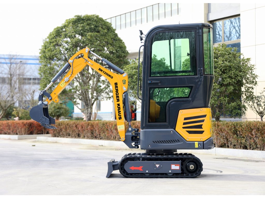 Mini Bager Berger Kraus BK1250KSR s kabínou, otočným ramenom a nastaviteľnými pásmi je robustne skonštruované minirýpadlo určené na práce na oplotení, výkop základov, pripájanie a záhradné práce. Malé rozmery a jednoduchá konštrukcia uľahčujú používanie a údržbu zariadenia. Špeciálna kompaktná konštrukcia umožňuje prepravu rýpadla na malých prívesoch.