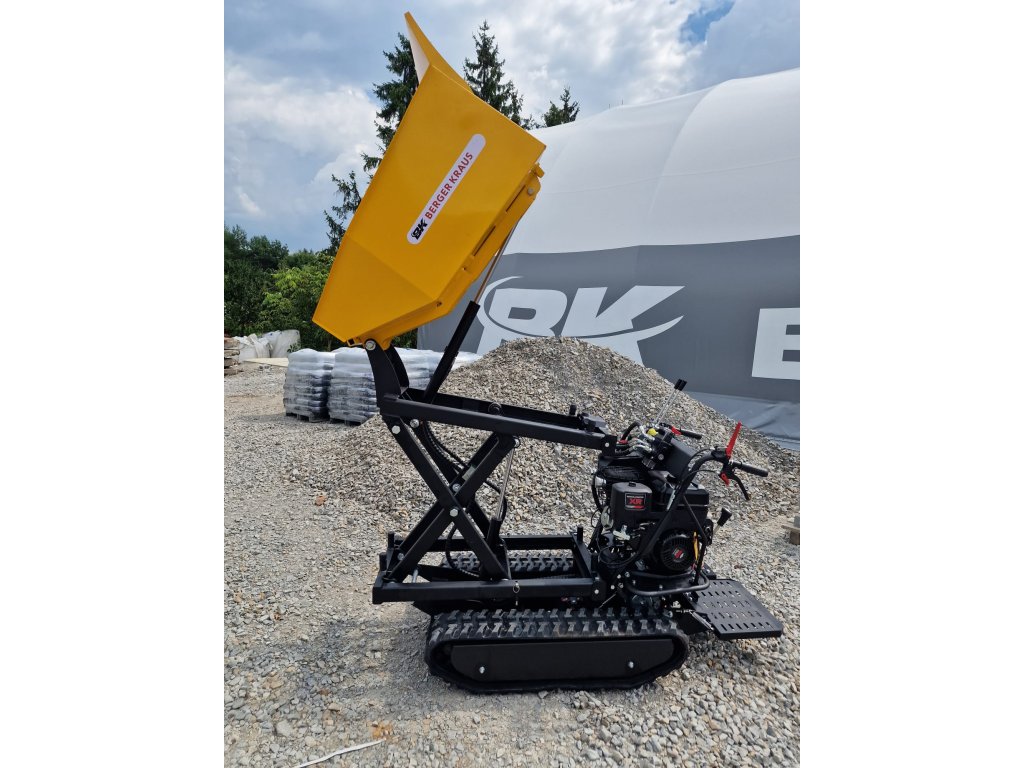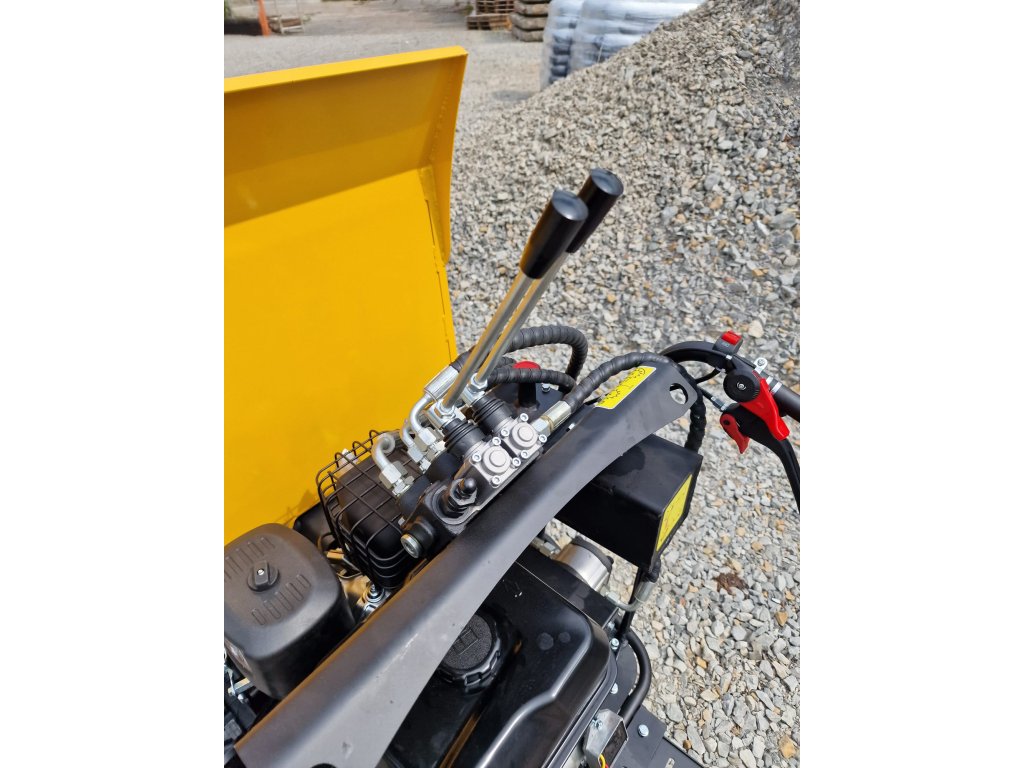 Dumper má hydraulické vykladanie a zdvíhanie.