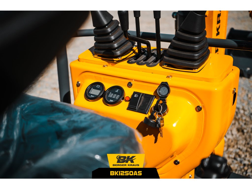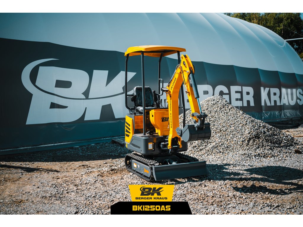Berger Kraus BK1250AS je robustný mini bager určený na oplotenie, výkop základov, inžinierske práce a záhradníčenie. Jeho malá veľkosť a jednoduchý dizajn uľahčujú jeho obsluhu a servis. Jeho kompaktný dizajn a skladacia strecha umožňujú prepravu na štandardných dodávkach do 3,5 tony a malých prívesoch.